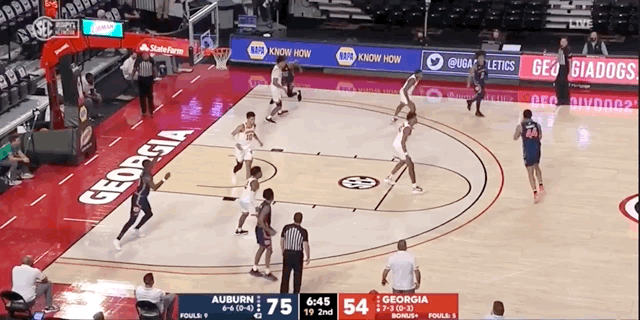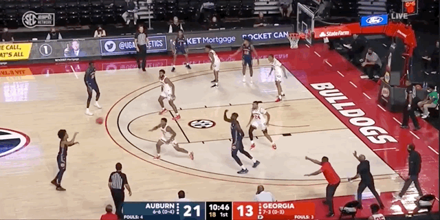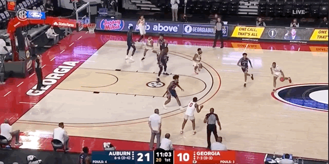 Last season at Georgia, Johnson hit 38.7% of his attempts from deep — a mark inside the 80th percentile nationally and one that would be the highest among all returning 2021-22 Auburn players. Per Hoop-Math, 40% of his shots came from 3-point range, with 79.2% coming off of assists. He’s an effective weapon in catch-and-shoot situations, and he’s not afraid to fire away from extra-deep range.