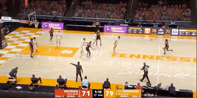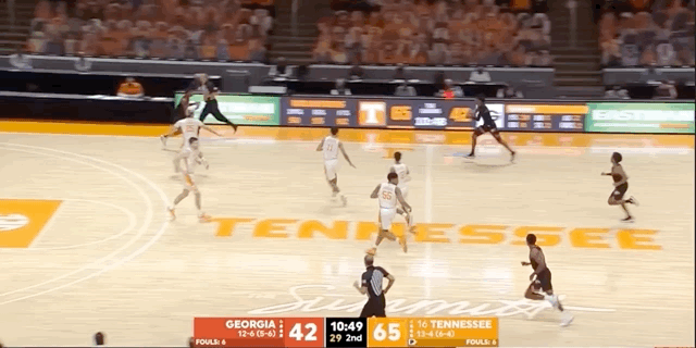 Johnson has some real tenacity about his game when he gets close to the rim. In a breakout performance against Tennessee, Johnson even posted up Santiago Vescovi and caught a lob pass for an easy two points: